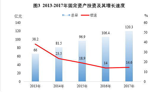 全县完成固定资产投资120.3亿元,比上年增长14.6%。在固定资产投资中,第一产业投资18亿元,比上年增长33.3%;第二产业投资28.2亿元,下降17.1%;第三产业投资74.1亿元,增长28.9%。剔除跨区项目和房地产:按经济类型分,国有投资55.1亿元,增长40%;非国有投资53亿元,增长8.9%,其中民间投资39.9亿元,增长5.3%;按投资方向分,其中产业投资23亿元,下降12.9%;基础设施投资51.3亿元,增长27.2%,占固定资产投资的47.4%。全年施工项目285个,增长22.3%。其中,本年新开工项目234个,增长12%。