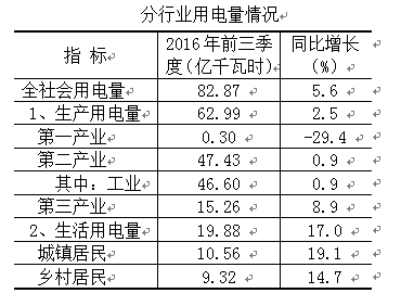 前三季度,全市经济运行稳中有升,全社会用电量增速一直保持正增长,特别是城乡居民生活用电量增长较快,贡献率为65.9%。