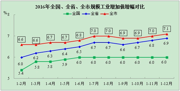 2016年全市规模工业增长7.1%