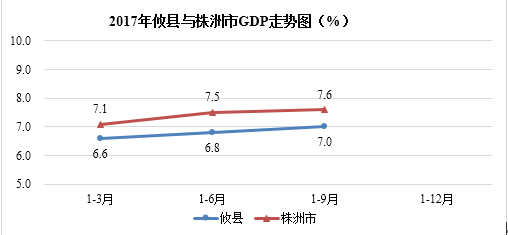 (一)经济质量越来越提高。前三季度,全县完成生产总值262.1亿元,同比增长7.0%,比一季度和上半年分别提高了0.4个百分点和0.2个百分点。完成财政总收入17.3亿元,同比增长2.2%,比上半年提高了11.5个百分点,占GDP的比重为6.6%。其中:税收收入8.7亿元,同比增长18.9%,税收占财政收入的比重为50%,比一季度和上半年提高了3.8和3.3个百分点。完成公共财政预算支出43.2亿元,同比增长14.0%。