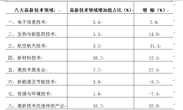 三、高新技术企业利润大幅增长,效益不断提高。一季度,全市高新技术产业实现主营业务收入366.8亿,增长 28.6%,较上年提升24个百分点,高于规模工业增幅18.6个百分点;实现高新技术产业利润总额 20.8亿元,增长23.8%,其中高新技术改造传统产业、高技术服务业、航空航天技术业三大领域快速增长,利润增幅分别为73.2 %、53.1 %和 34.6 %,这三大领域实现高增幅有力拉动了高新技术产业利润的增长,全市高新技术产业企业实现了经济总量及效益的大幅提升。