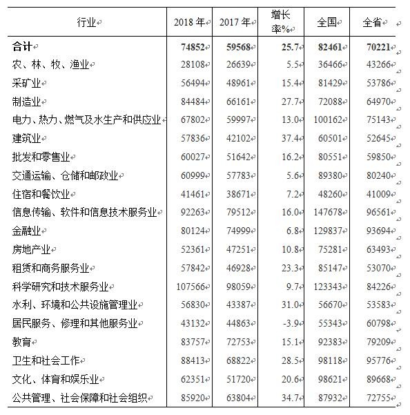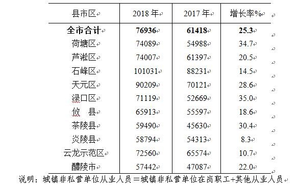 2018年株洲市城镇非私营单位就业人员 年平均工资74852元,居全省第二