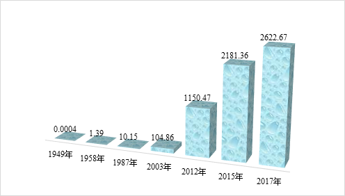 图1:新中国成立以来主要年份固定资产投资总量(亿元)