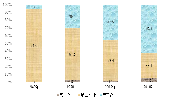 图4:新中国成立以来主要年份三次产业投资结构(%)