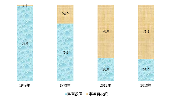 图3:新中国成立以来主要年份国有和非国有投资占比(%)