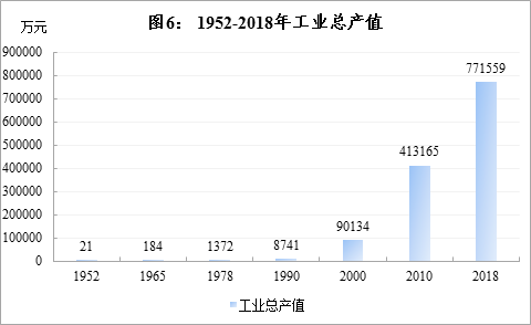 70年来,县委、县政府一直重视协调发展问题,农业基础地位不断增强,工业和服务业快速发展,经济结构不断优化。产业结构基本实现由农业为主,向一、二、三次产业协同发展的转变。1952年第一产业增加值占国内生产总值的77.2%,到1978年,工业增加值占比由1952年的2.2%提高到16.8%,而第一产业占比则由77.2%下降到58.9%。进入改革开放新时期,第二产业继续快速发展,第三产业突飞猛进。到2018年,第一产业由1978年的58.9%下降为14.1%,第二产业由1978年的21.2%上升为38.6%,第三产业则由1978年的19.9%大幅上升至47.3%。