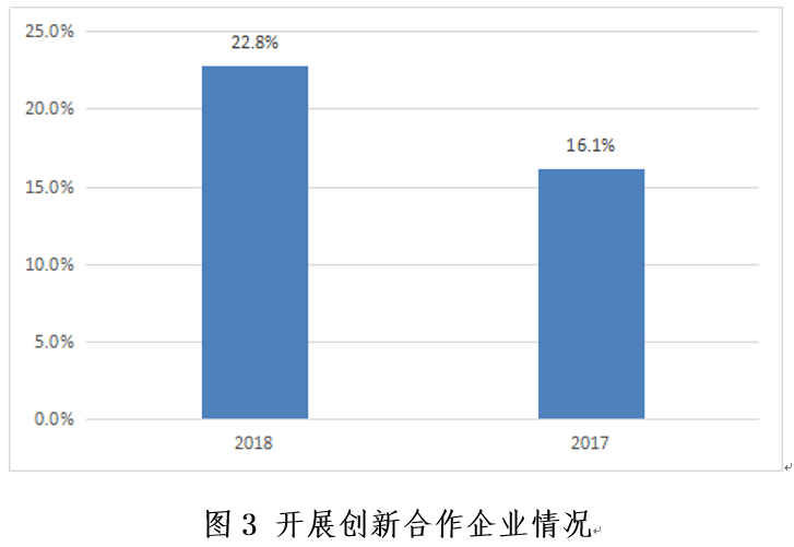 2018年开展了创新合作的企业346个,规模以上工业企业总数的22.8%,比上年增加了81家企业,提高了6.7个百分点(见图3)。
