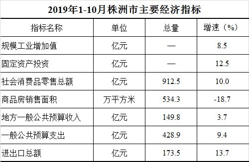 2019年1-10月株洲市主要经济指标