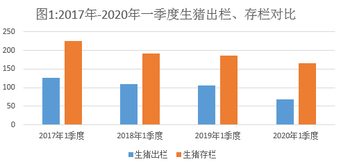 (二)畜禽产销遭受冲击,生猪恢复存在压力。在疫情防控前期,出于防控工作的需要,禁止全市农贸市场活禽交易与宰杀,乡村地区道路有所管制,物流受阻导致畜禽喂养饲料无法运送,人员居家隔离导致买卖受限,畜禽类的生产和销售两端受到双重挤压,一季度,全市生猪出栏68.2万头,大幅下降36.1%,家禽出栏516.3万羽,下降15.4%。如图1所示,近四年一季度生猪出栏、存栏逐年下降。目前,受新冠肺炎疫情、非洲猪瘟疫苗暂未上市、生猪养殖成本增加等多重因素叠加影响,生猪补栏不理想,一季度生猪存栏较同期下降15.9%,生猪恢复性生产存在压力。