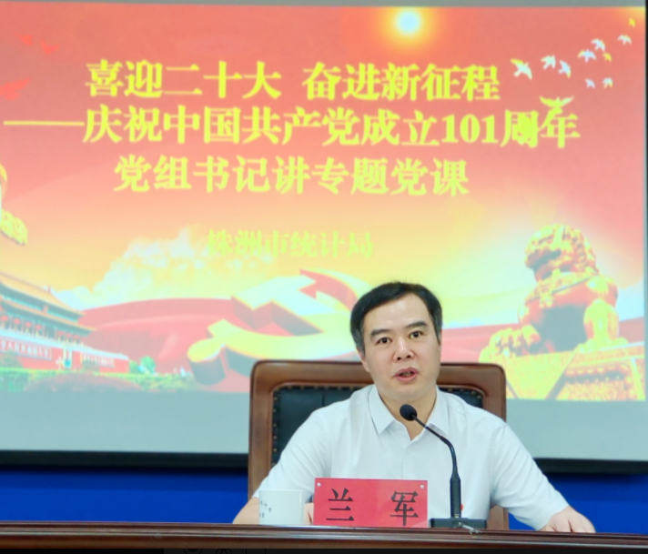 兰军授课的主题是《准确把握以经济建设为中心的深刻内涵 以高质量统计数据服务“制造名城 幸福株洲”发展大局》。他带领大家一同回顾了以经济建设为中心的历史脉络,梳理了党和国家在新民主主义革命时期、社会主义革命和建设时期、改革开放和社会主义现代化建设新时期以经济建设为中心的重要思想;深入分析了进入中国特色社会主义进入新时代后,党和国家坚持以经济建设为中心的历史逻辑、理论逻辑、实践逻辑。最后结合当前全市经济发展形势和统计工作实际,就如何以高质量的统计数据服务“制造名城 幸福株洲”发展大局提出建议:要对标对表,当好实现目标的风向标;要建言献策;要当好服务决策的智囊团;要精准监测,当好发现问题的警报器;要客观评价,当好发展结果的裁判员;要牢记初心,当好社情民意的温度计。