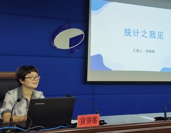 环境和能源科科长谭婉妮授课的主题是《统计之我见》。她从统计含义及特征、统计职能及任务、统计的具体过程三个方面阐述了统计的具体含义,从统计名称的由来、统计实践的发展、我国近现代统计史三个方面介绍了统计的发展历程,最后从触及国民经济方方面面、为领导决策提供参考依据两方面分析了统计观念市场化、统计调查方式多样化、统计手段现代化、统计职能多元化四个发展趋势。