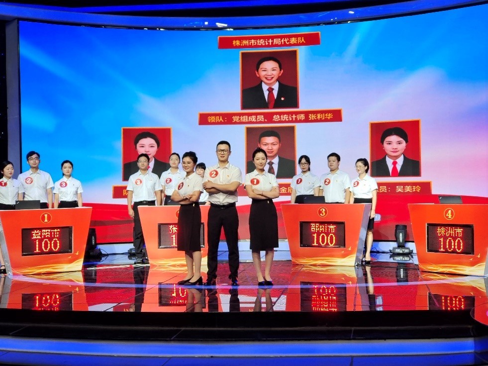 8月18-19日,湖南省统计系统“喜迎党的二十大 建功新湖南”党史知识和统计法律法规知识竞赛在长沙举行,全省16支代表队参赛。株洲市统计局由党组成员、总统计师张利华带队,派出周金辰、谭依珂和吴美玲3名同志组成代表队,通过层层角逐,脱颖而出,以总分第一的绝对优势,荣获一等奖。