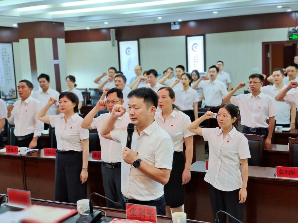 全体党员在王志强的带领下齐唱《没有共产党就没有新中国》并重温入党誓词。铿锵优美的旋律,坚定有力的宣誓,激励全体党员坚定信心,勇毅前行。