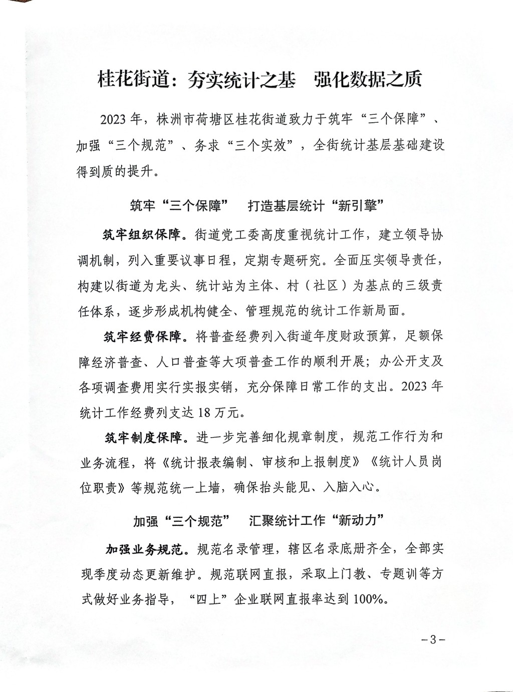 近期,湖南统计基层基础建设工作简报2024年第5期刊登了我市荷塘区桂花街道的统计基层基础工作经验,推广至全省各市州交流学习,我市统计系统的优良作风和先进经验得到高度肯定和全面推广。